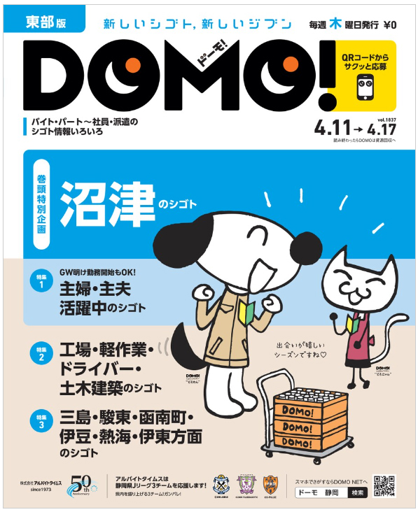 アルバイト、派遣、正社員など幅広く求人情報を掲載。フリーペーパーだけでなく、インターネットのサイト「DOMO!NET」との連動で、効果的な就職活動をサポートします。